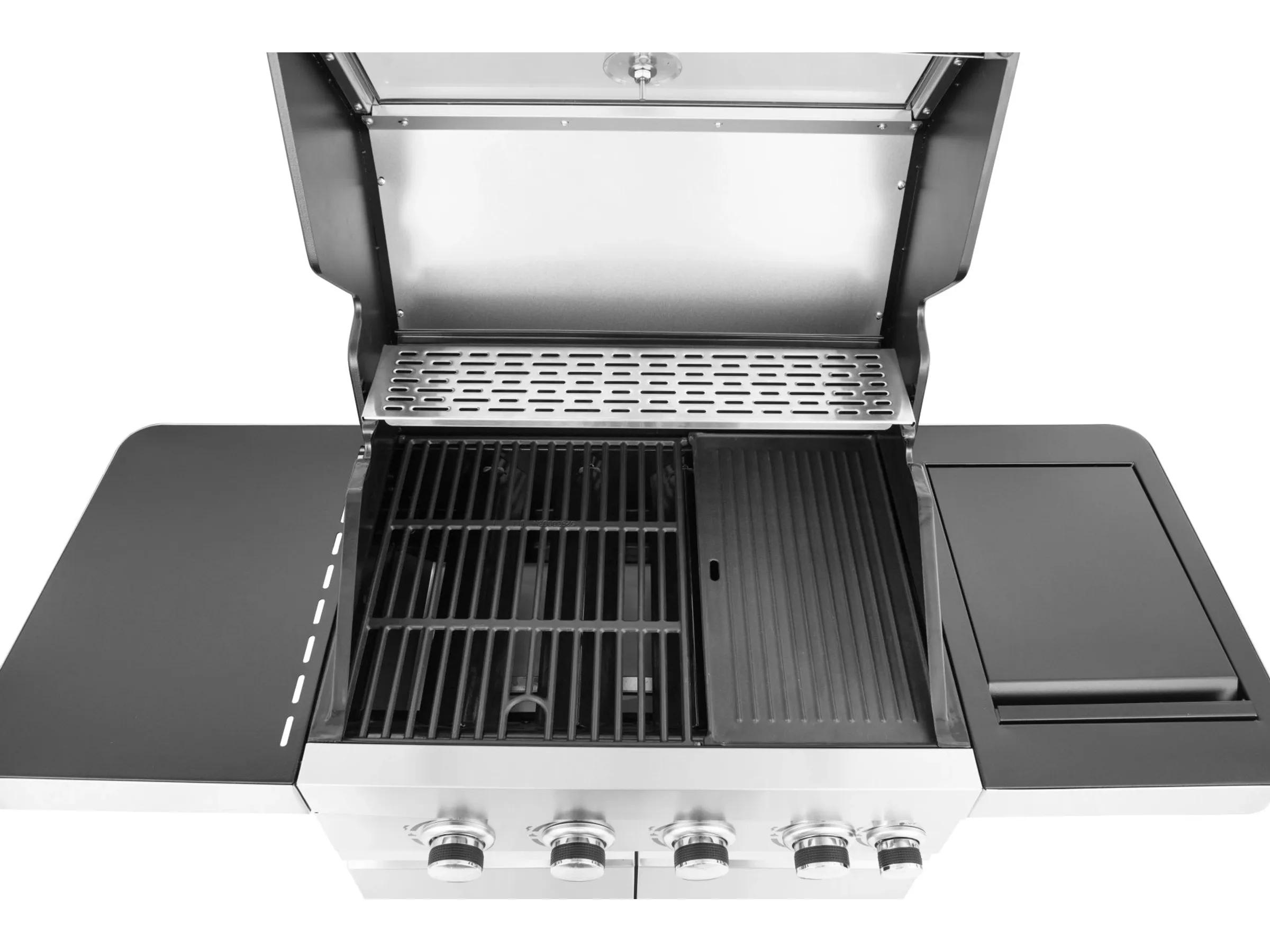 – Leistung: 4 Hauptbrenner je 3,0 kW und 1 Seitenbrenner 2,5 kW (insg. 14,5 kW)