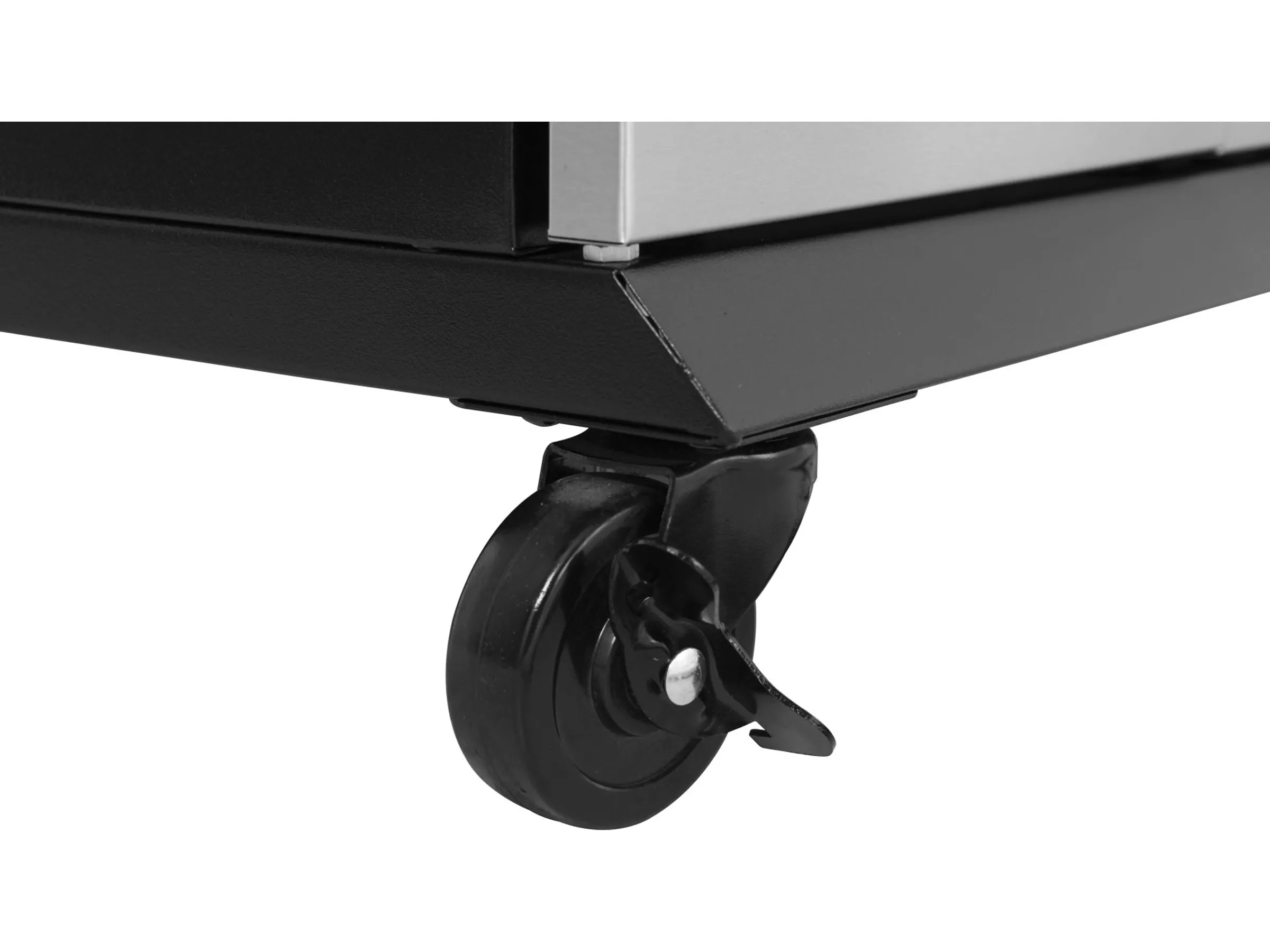 Sicherheit hat beim Design dieses Modells eine große Rolle gespielt. Der Grill steht stabil, auch auf leicht unebenem Untergrund, wobei feststellbare Rollen zusätzlichen Halt bieten.