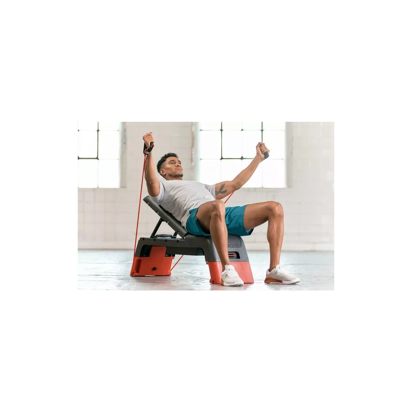 Aus dem beliebten und extrem robusten Step Board hat sich eine flexible Multifunktions-Plattform mit vielfältigen Trainingsmöglichkeiten entwickelt. Das Reebok Deck bietet Ihnen alle Vorteile eines höhenverstellbaren Aerobic-Steppers. Dank der verstellbaren Rückenlehne können Sie das Step Board auch als Bank für Ihr Krafttraining nutzen. Ideal einsetzbar als platzsparende Bank für das Hanteltraining oder das Training mit Widerstandsbändern.