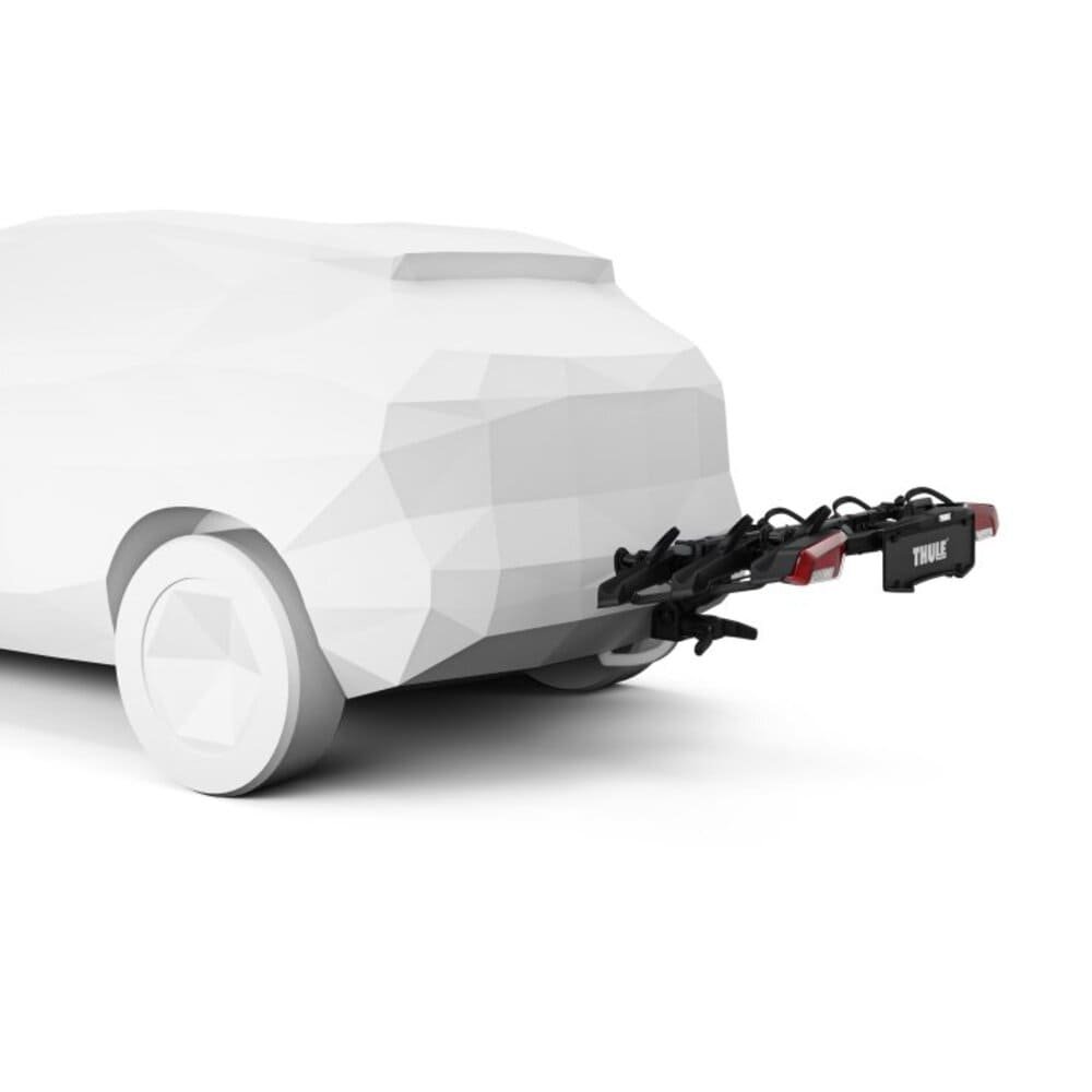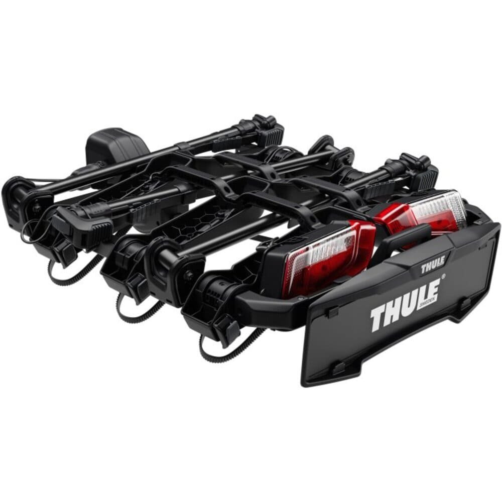 Der Thule OutPace bietet Platz für bis zu drei Fahrräder und verfügt über eine spezielle Klappfunktion, die den Platzbedarf beim Parken reduziert und das Beschädigungsrisiko minimiert. Integrierte Lampen sorgen für Sichtbarkeit und Sicherheit.