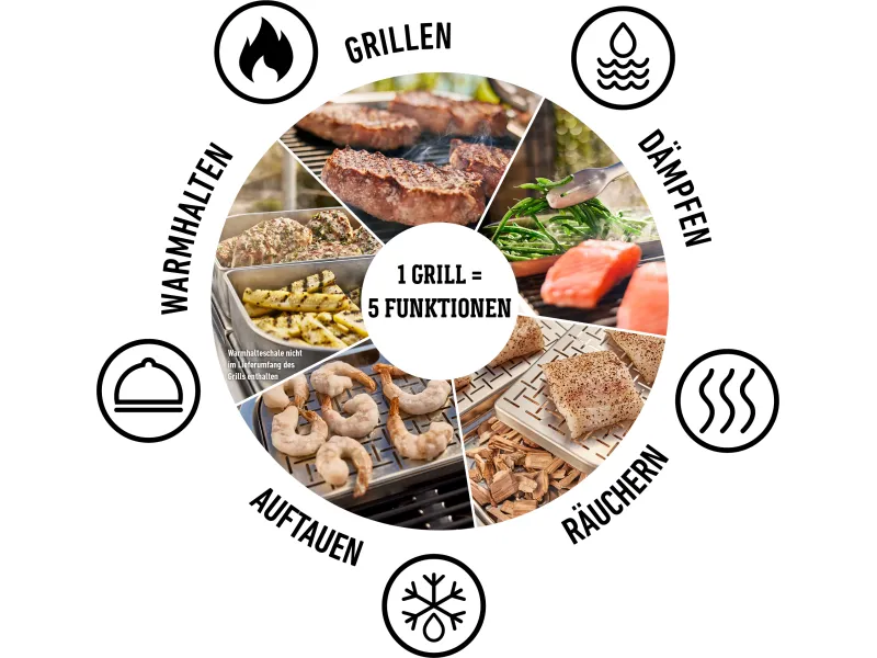 Die Technologie ermöglicht sowohl scharfes Anbraten als auch schonendes Garen. Damit eignet sich der Grill für verschiedenste Speisen und Grilltechniken.